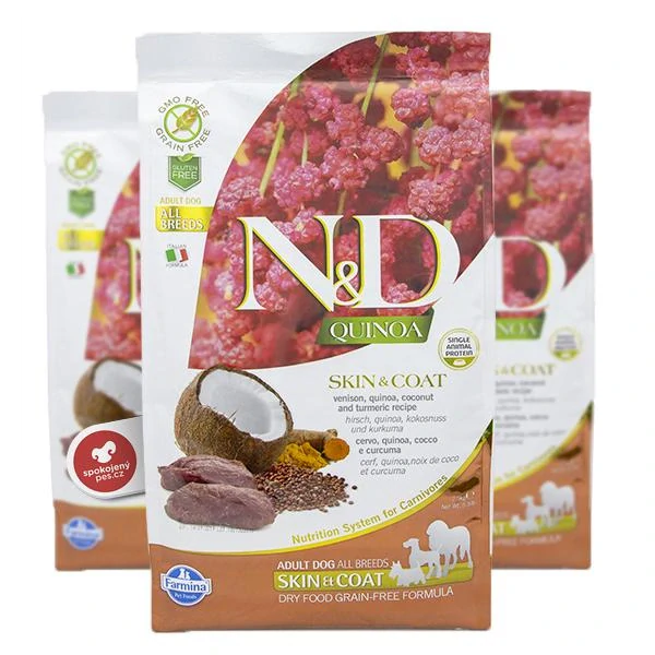N&D GF Quinoa Dog Skin & Coat Venison & CoconutSkladem20 Kč/ ks