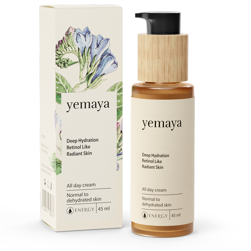 Neobyčejně komplexní působení krému Yemaya spočívá v tradičně ověřených a pleti prospěšných bylinách a složkách v kombinaci s moderními patentovanými bioaktivními látkami. Je hloubkově hydratační a regenerační. Tyto účinky umocňuje aromaterapeutická parfemace éterickými oleji blue tansy, bergamotu a jasmínu, které dodávají krému osvěžující vůni.